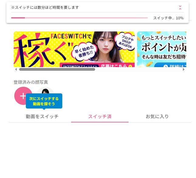 FaceSwitchは操作が非常にシンプルで、基本的には「顔画像を登録 → 動画を選択 → 生成」の3ステップで完了します。以下では、初心者でも迷わないように各工程を順番に解説します。