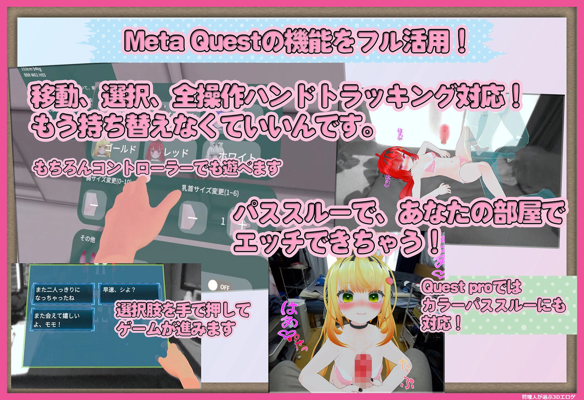 キャラクターとイチャイチャエッチをしたり、自分でカスタマイズした女の子を作れたりします!3Dエロゲーではそんな願望を叶えてくれるのポイントとなってます。