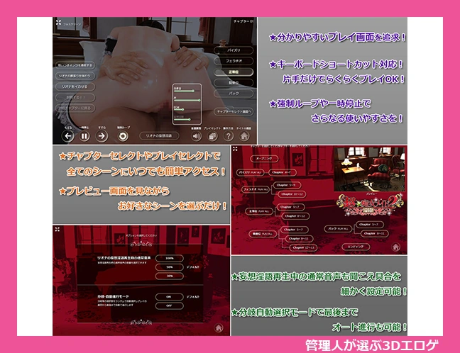 美麗な3Dアニメーションや60分以上のエロボイスと音声効果も楽しめ、KENZsoftのこだわりが存分に堪能できる作品!。