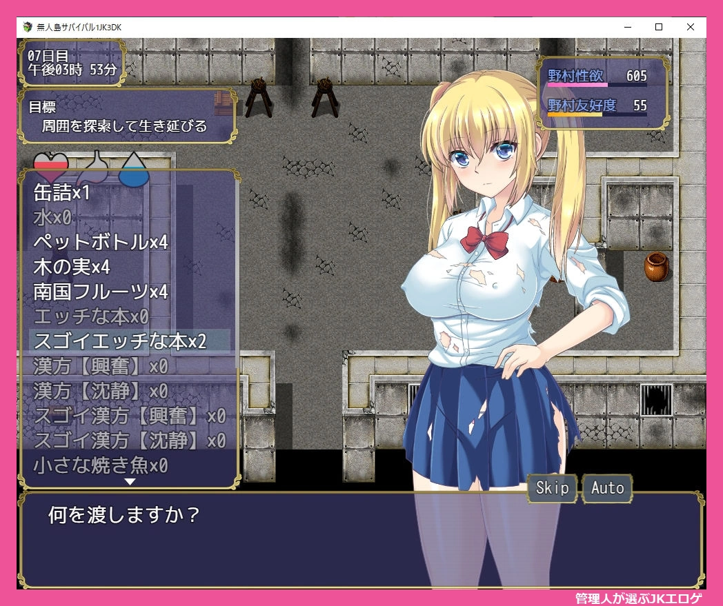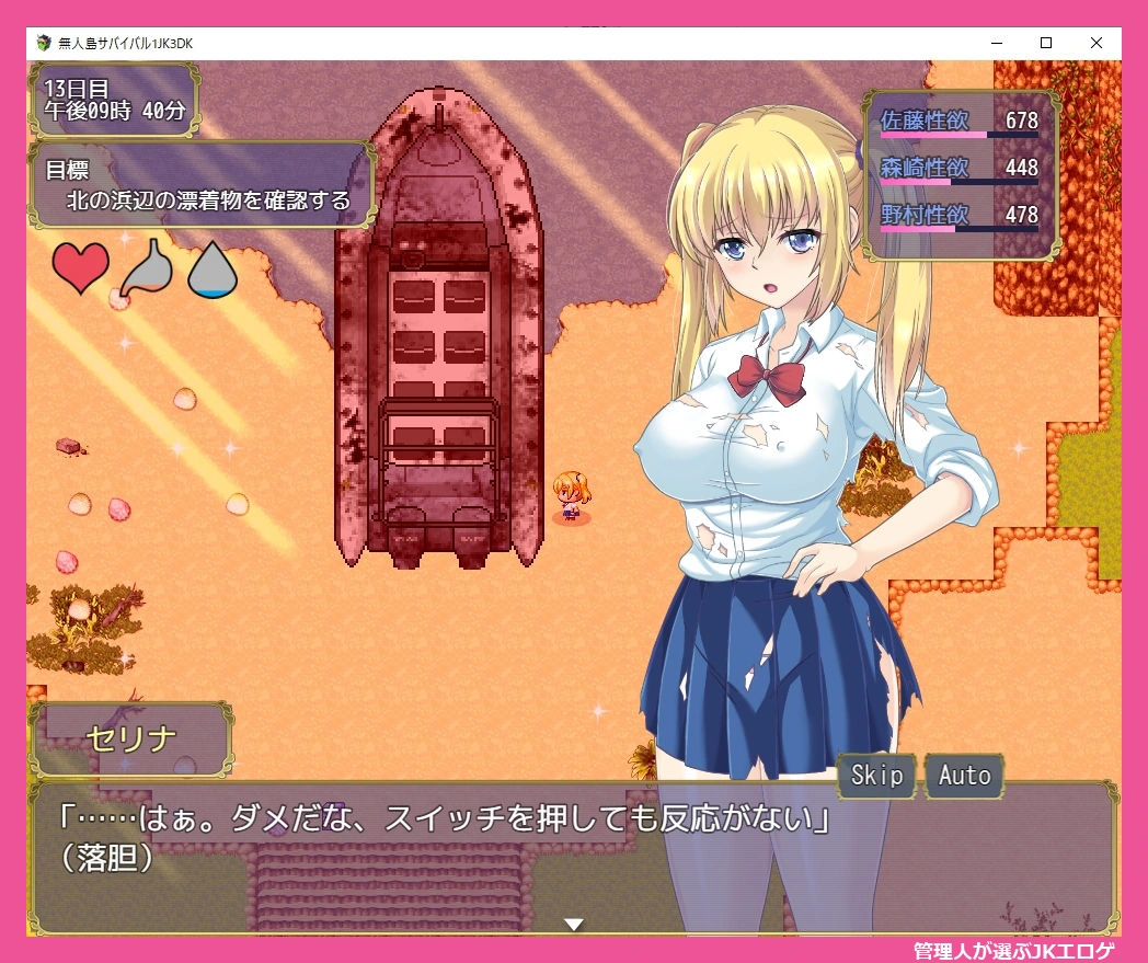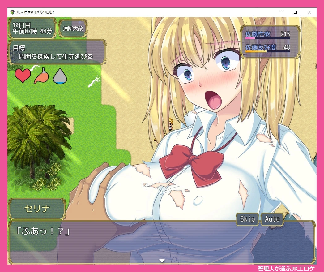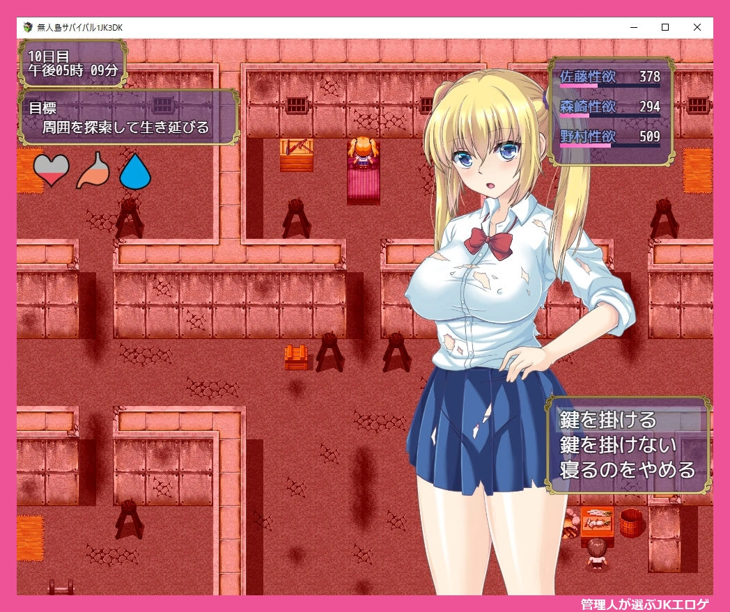 体力や満腹度、水分がリアルタイムで減少し、性欲も要注意。