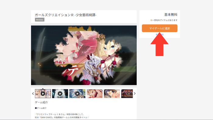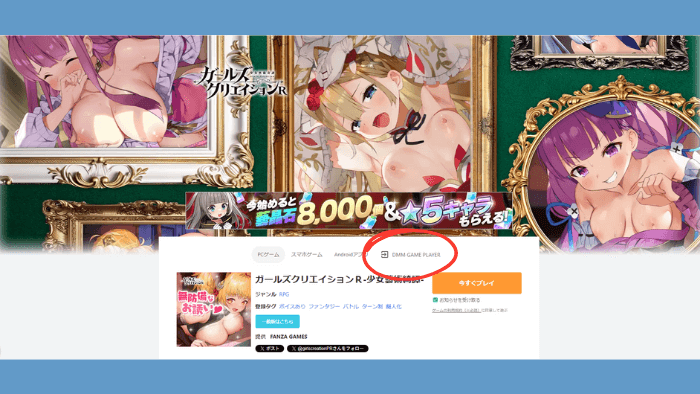 手順2.FANZA GAMESからガールズクリエイションR-少女藝術綺譚-にアクセスする