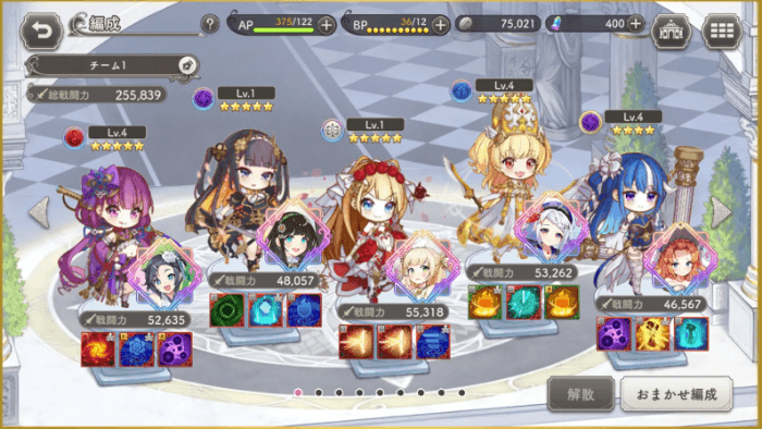 序盤で手に入る藝術家をバランスよく育成し、様々なタイプの敵に対応できるパーティを編成することをおすすめします。