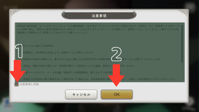 注意事項の同意してください。