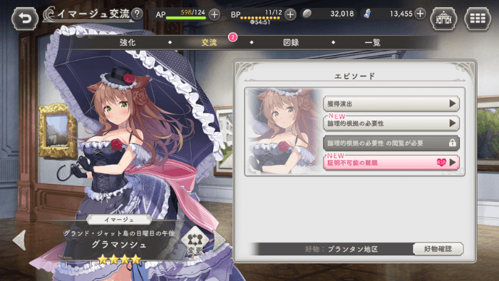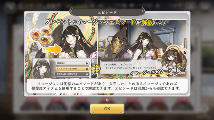 親愛度レベルが上昇すると、キャラクターのパラメーターが強化されるだけでなく、固有のエピソードが解放されていきます。