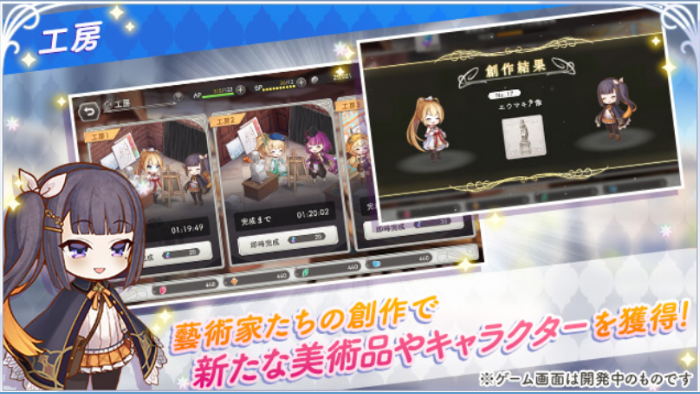 創作システム「工房」を活用して、好きな藝術家を2人組み合わせることで新たな美術品やイマージュを入手できます。