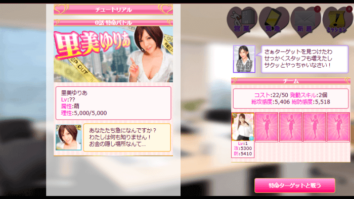 チュートリアルに従って、プレイヤー名設定や最初のデッキ編成を進めれば、すぐに特命ミッションがスタート!