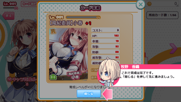 カードステータスの底上げができるため、レベルを上げてバトルがサクサク進めましょう。