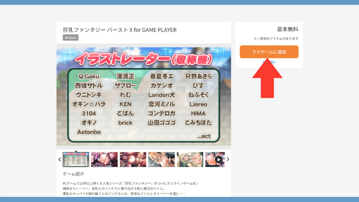 DMMGAMEPLAYERを起動したら巨乳ファンタジーバーストXをマイゲームに追加します。