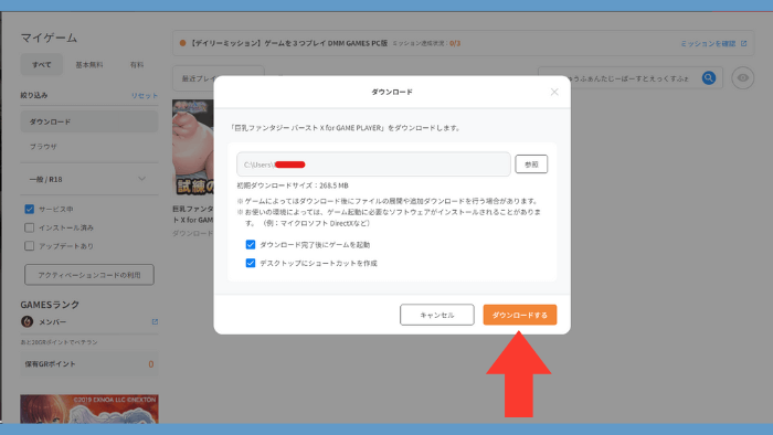 手順4.DMMGAMEPLAYER版をダウンロードする