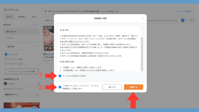 手順2.FANZA GAMESから巨乳ファンタジー バースト Xにアクセスする