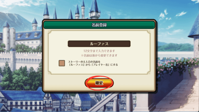 名前をルーファスから変更できるので、変更したければ入力して確定してください。