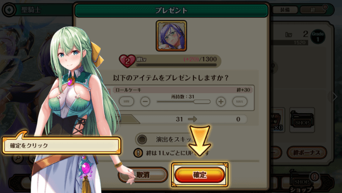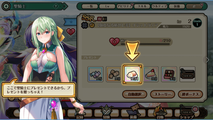 好みの聖騎士にプレゼントを贈ってください。