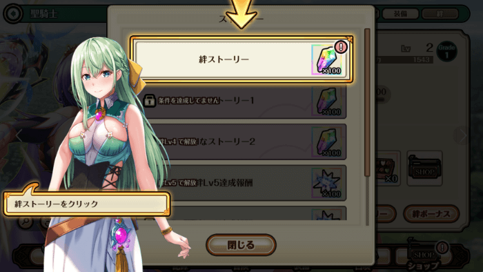 絆レベルを2に上げるとストーリーが解放されます。