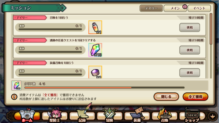 ログインボーナスを逃さないように、毎日コツコツミッションをこなしましょう!