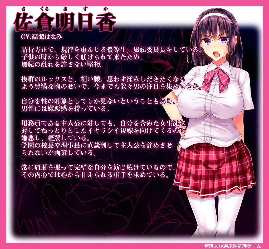 | ゲームジャンル | アドベンチャー(用務員によるJK催眠凌辱AVG) |