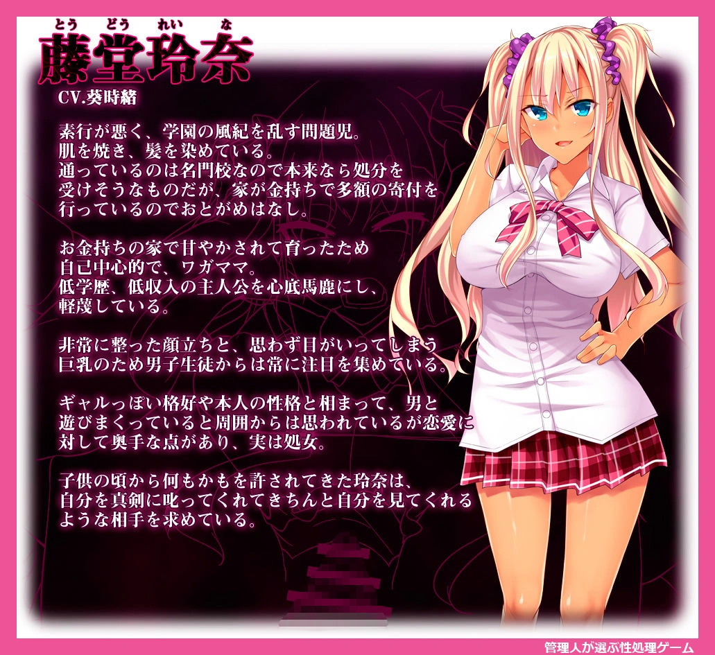 生意気な女の子を催●で下品に●すところが好評で、黒ギャルや白ギャルそれぞれの好みで楽しめる。