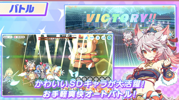 バトルの最大の見どころは、可愛らしくデフォルメされたSDキャラたちが画面狭しとひたすら動きまくるオートバトルです。