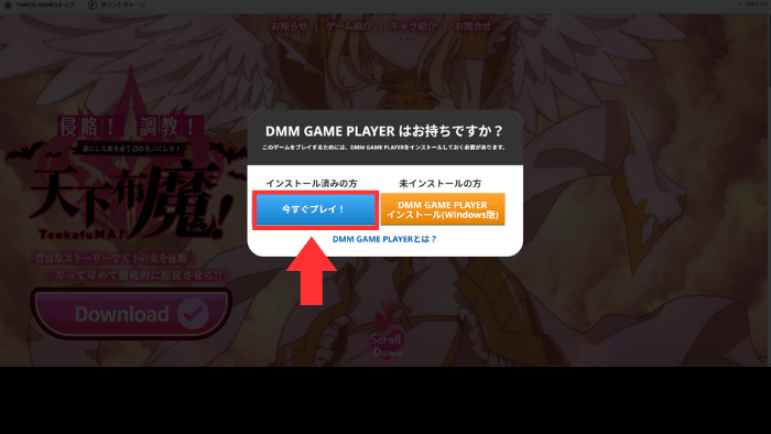 DMMGAMEPLAYER版をインストールしていれば、今すぐプレイをクリック