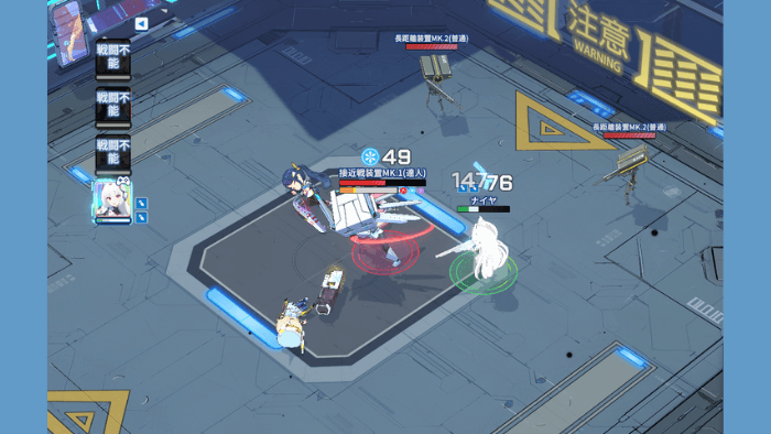 ボス戦では敵の大技の予兆(赤いラインや扇形の範囲表示)が出現。
